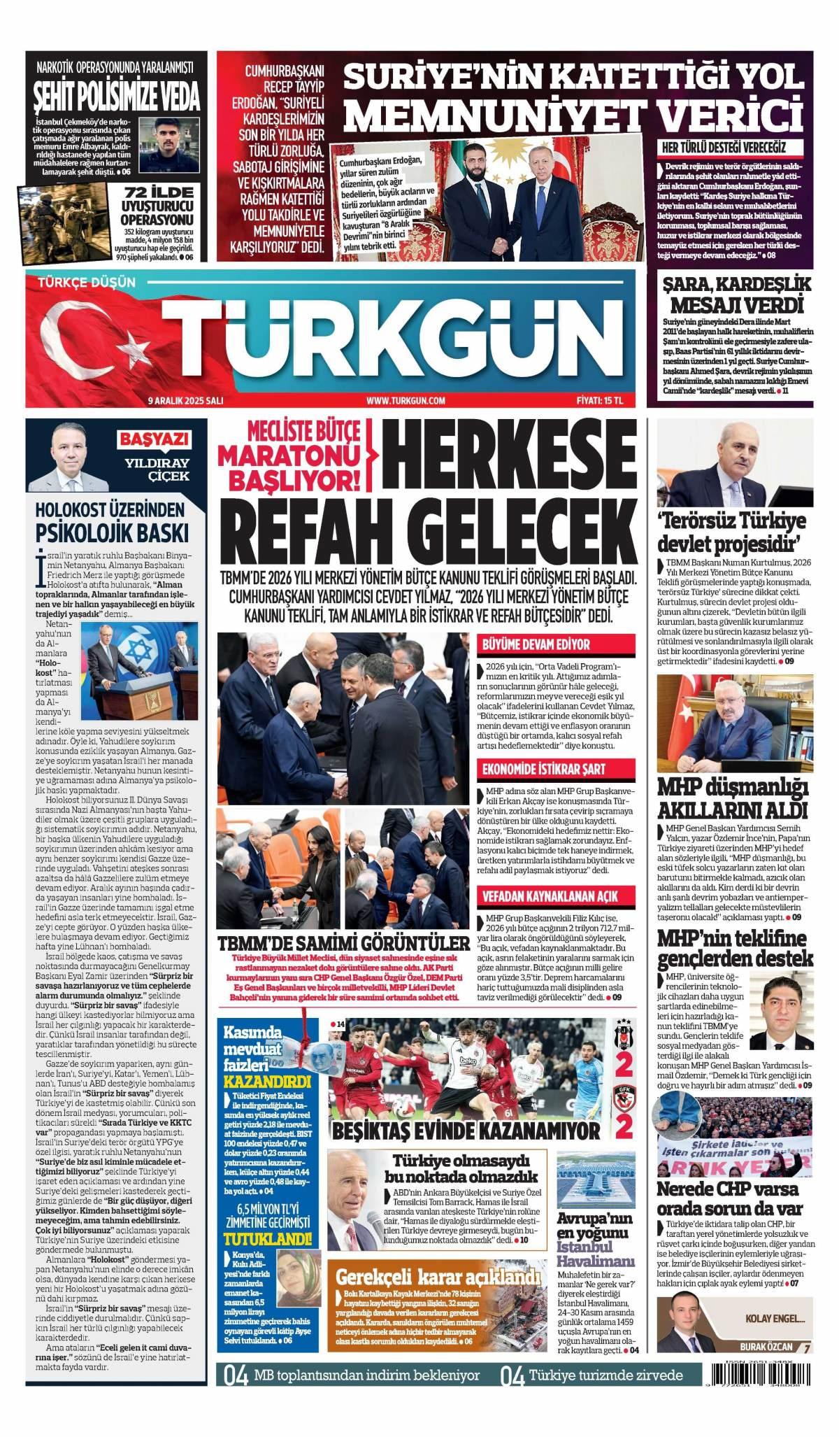 Türkgün Gazetesi 9 December 2025, Tuesday Günü Manşeti