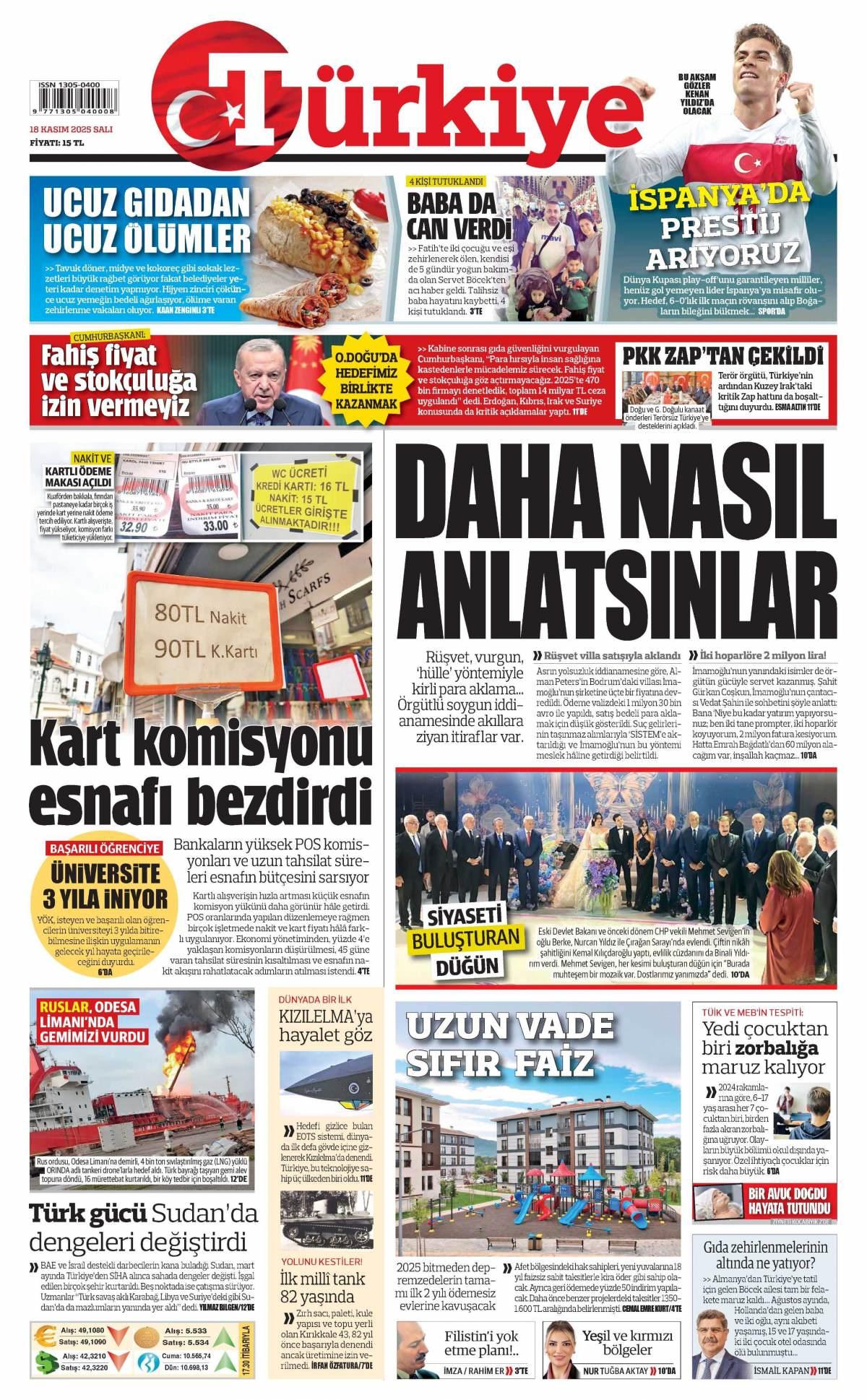 Türkiye Gazetesi 18 November 2025, Tuesday Günü Manşeti