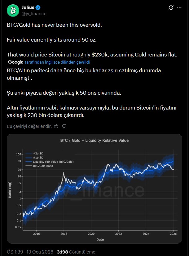 2025 yılında gram altın yüzde 100’e yakın değer kazanırken buna karşın Bitcoin fiyatı 126 bin dolarlık ATH seviyesinden sert bir düşüş yaşadı. BTC/Gold paritesi son iki yılın en düşük seviyesine geriledi ve BTC ons altın karşısında yüzde 50’ye yakın değer kaybetti.