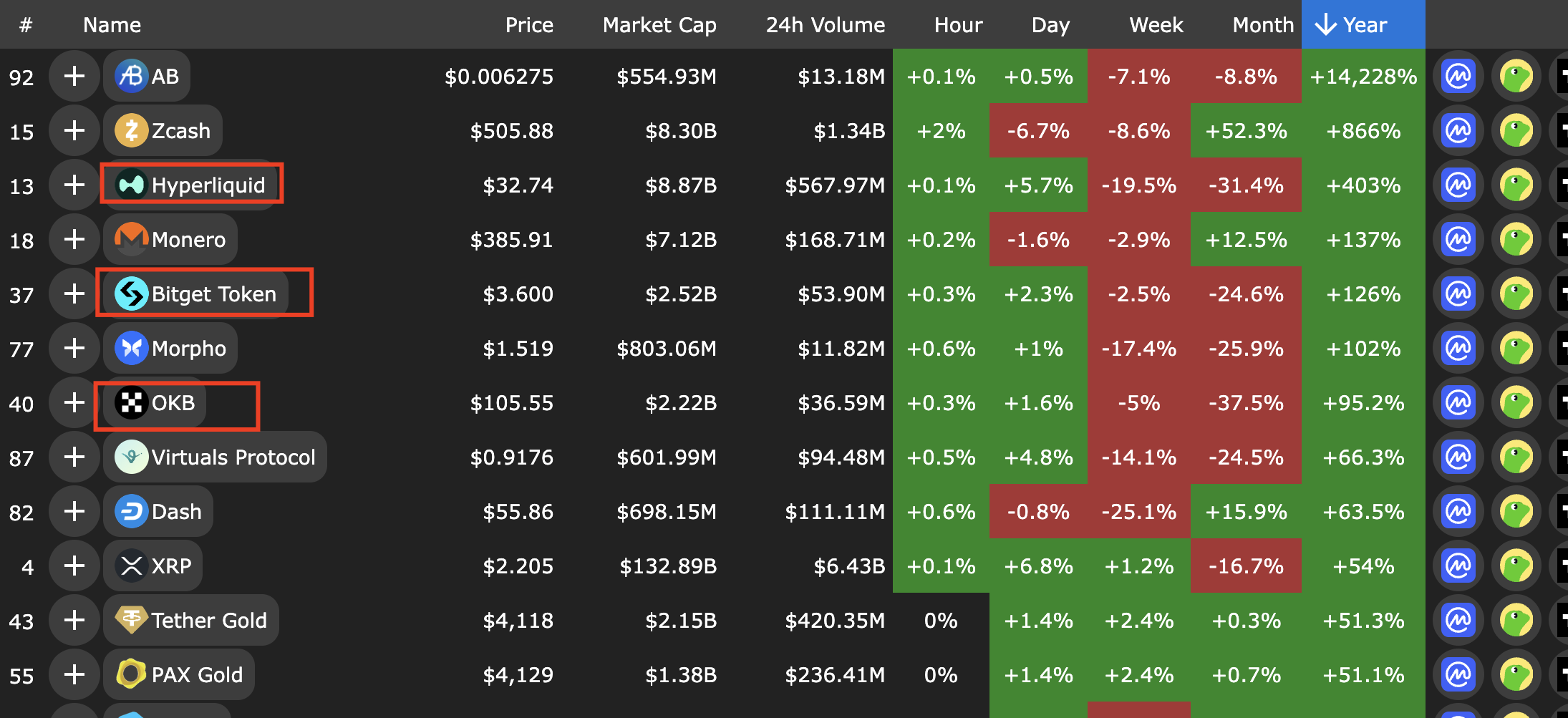 Altcoinler son bir buçuk aydır düşüş gösterirken borsa tokenları düşüşe karşı daha dirençli bir duruş sergiledi ve piyasa toparlanırken de güçlü bir çıkış yakalamayı başardı. Bitget borsasının yerel tokenı BGB coin 3,5 doların üzerinde işlem görüyor. OKX borsasının yerel tokenı OKB, son bir ayda düşüş göstermesine rağmen 105 doların üzerine çıkmayı başardı.