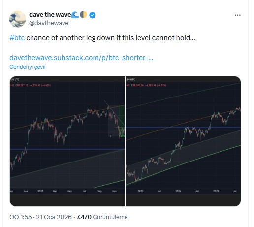 2021 piyasa zirvesini tahmin eden analist olarak bilinen Dave the Wave, son dönemlerde Bitcoin grafiğinde kısa vadede yükselen üçgen formasyonunun oluştuğunu ancak BTC fiyatının 88 bin doları kaybetmesi ile aşağı yönlü hareket etmesinin de oldukça muhtemel olduğunu açıkladı.