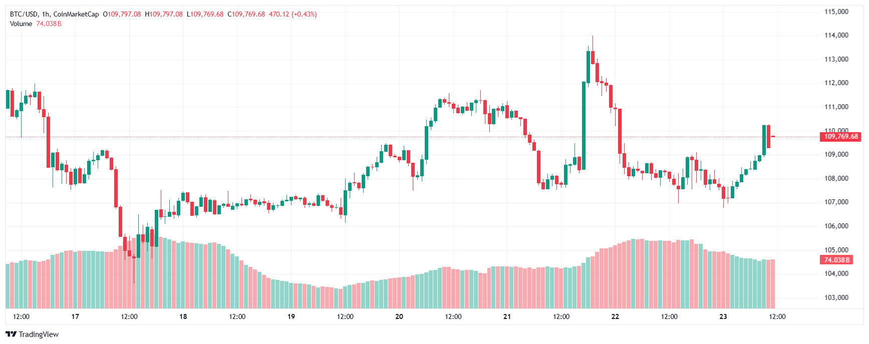 BTC fiyatı 23 Ekim Perşembe günü 109 bin dolar ile 110 bin dolar arasında hareket ediyor. Güncel olarak yeni ETF başvuruları, yumuşayan makroekonomik ortam BTC’nin kısa vadeli güç kazanmasını destekledi.