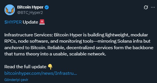 Bu güncelleme, Bitcoin Hyper’ın, geliştiricilerin Bitcoin’in güvenilir temeli üzerinde Solana hızında inşa edebileceği açık ve yüksek performanslı bir ağ oluşturma misyonuna istikrarlı bir şekilde ilerlediğini gösteriyor.
