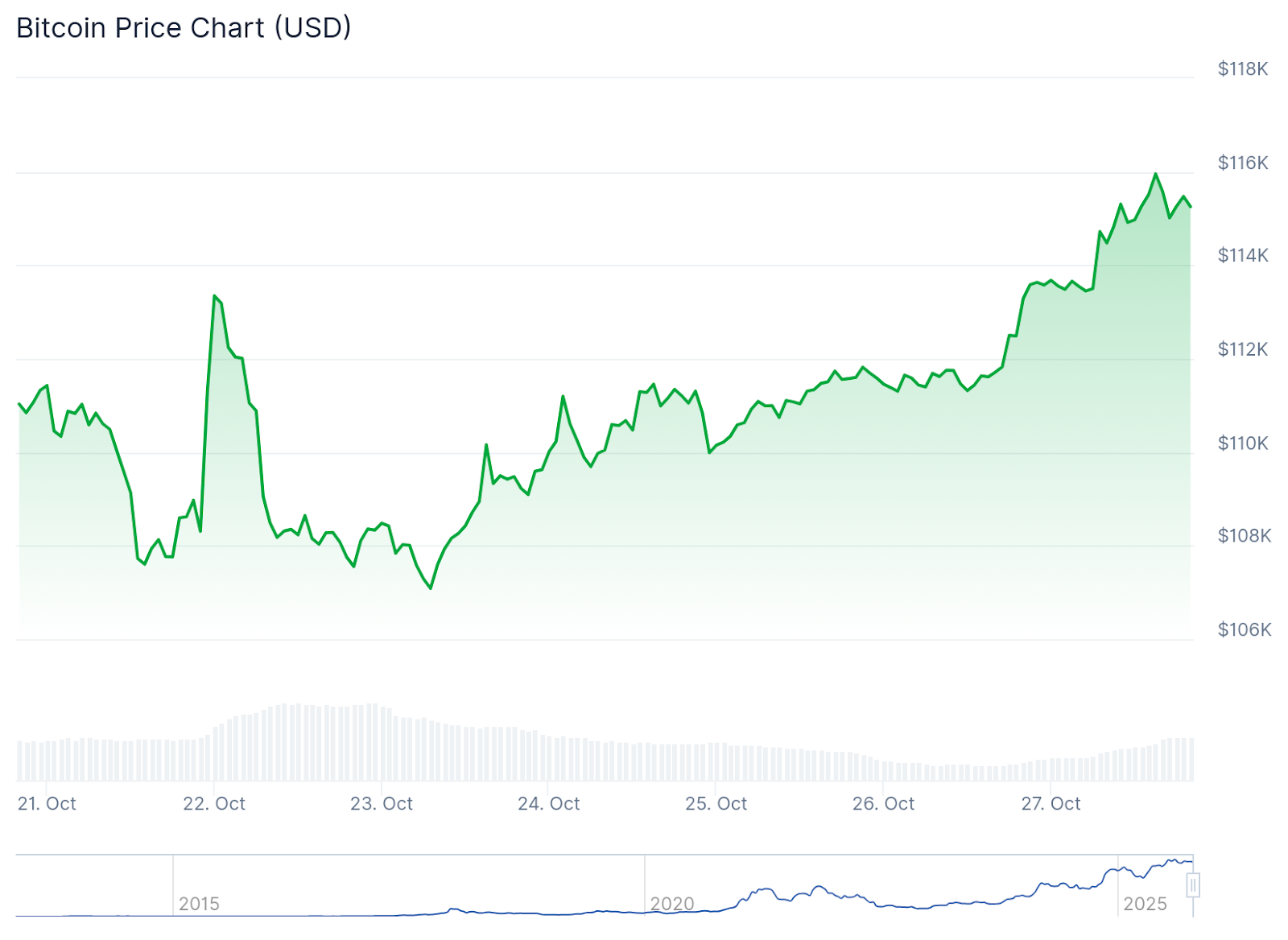 Bu ayın başlarında 126.000 dolarlık tüm zamanların en yüksek seviyesine ulaştıktan sonra Bitcoin fiyatı dip seviye olan 104.000 dolara kadar düştü. Ancak pazartesi günü yeniden toparlanmaya başlayan BTC, 116 bini test etti.