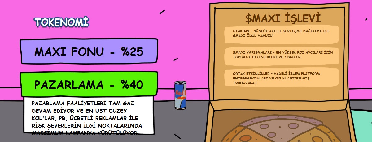 Tamamen meme coin kültürü üzerine şekillenen MAXI token basit bir felsefeye sahip. Bilinirliği yükselterek topluluk gücünü katlamayı ve böylece bir sonraki büyük meme coin olmayı hedefliyor. Bunu hayata geçirmek için güçlü bir yol haritası oluşturan MaxiDoge ekibi; staking, proje ödülleri, yarışmaları ve ortak etkinlikler ile meme coini destekliyor.