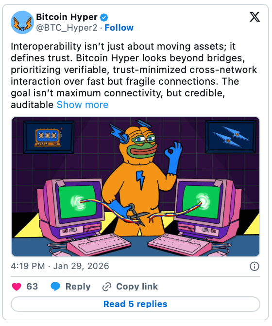 Köprü mekanizması motor görevi görür ve Bitcoin Hyper’ın son geliştirici güncellemesinde olduğu gibi “asgari güvene dayalı birlikte çalışabilirlik” yaklaşımını benimser. Kullanıcıların küçük bir doğrulayıcı grubunun dürüstlüğüne güvenmek yerine kriptografik kanıta dayalı bir modeli hayata geçirir.