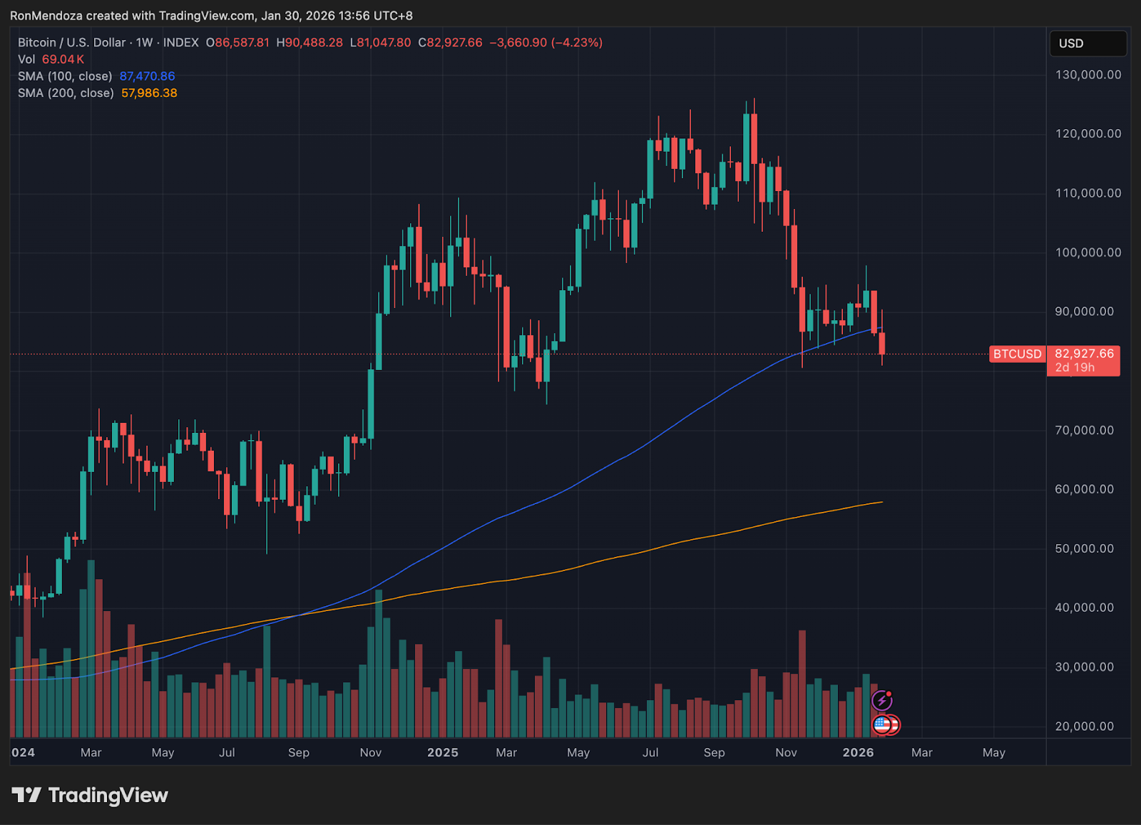 Bu kırılma BTC’yi şu anda 87.250 dolar civarında bulunan 100 haftalık hareketli ortalamanın altına indirdi. Bu düşüş sonrası yatırımcı 75.000 dolarlık desteği takip etmeye başladı.