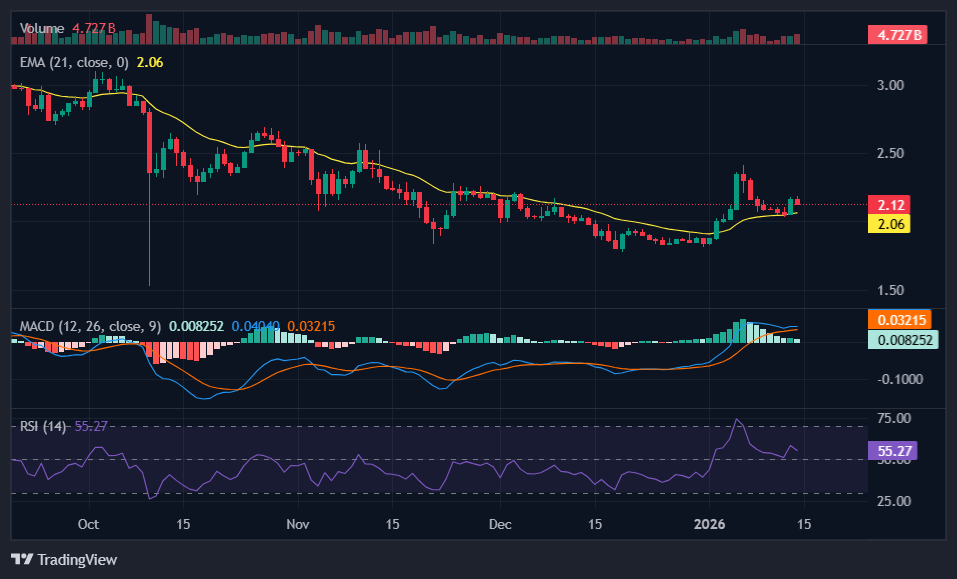 Güncel olarak XRP fiyatı yazım sırasında 2.12 dolardan işlem görüyor ve fiyat 21 günlük hareketli ortalamanın üzerinde işlem görmeye devam ediyor. Pozitif bölgeye yükselen MACD göstergesi satış baskısının giderek zayıfladığını gösteriyor. RSI seviyesi ise 55 seviyesinde nötr bölgede hareket ediyor.